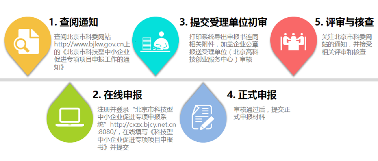 会上,市科委高新处主管工程师回顾了历年来该专项政策的资助情况及产生的良好效果,并就今年该政策的特点和申请步骤、评审流程等作了详细解读。他介绍说:“该专项起源于由科技部主管、财政部监管的创新基金专项,北京市科委作为地方科技主管部门,为科技型中小微企业提供地方科技政策匹配支持,设立了市科技型中小企业促进专项。今年该专项将分别对具备条件的科技创新项目和科技创业项目进行支持。科技创新项目采取答辩评审及实地核查方式,优先支持获得天使投资或风险投资(VC)的项目,通过国家高新技术企业认定,及各类创新创业大赛优胜企业,支持金额不超过60万元,计划支持约100项;科技创业项目采取材料评审及实地核查方式,优先支持市级以上的众创空间、孵化器、大学科技园、中小企业服务机构以及技术创新联盟、行业协会等创孵机构推荐的项目,获得天使投资或风险投资(VC)的项目,各类创新创业大赛优胜企业,支持金额不超过25万元,计划支持约400项。”创新基金项目申报步骤详见下图所示
